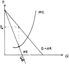 В условиях монополии MR меньше, чем AR. Соответственно, MR оказывается меньше цены. Сила монопольной власти L − показатель монополии. Если L=1, то это монополия в чистом виде. Если L≤1, то на рынке присутствует несколько крупных монополий. Изменение прибыли монополиста