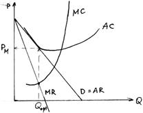 В условиях монополии производитель максимизирует прибыль, одновременно регулируя цену и количество товара, которое он производит для того, чтобы удовлетворить спрос. Изменение прибыли в условиях монополии