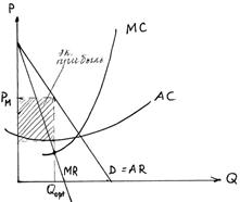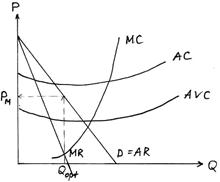 3) Цена падает настолько, что Pм<АС.