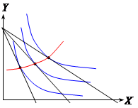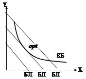 Точка, в которой угол наклона бюджетной линии и касательной (нормы замещения) совпадает, − потребительский оптимум. Задача
