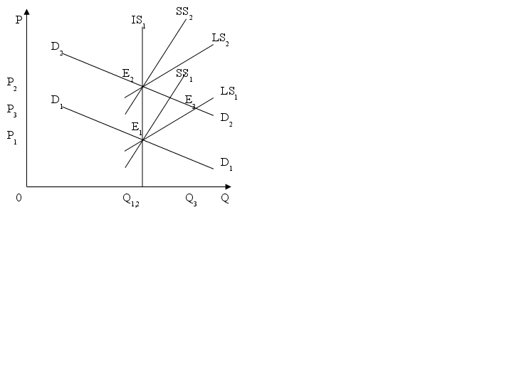 Рисунок 4в – Долгосрочное равновесие Понятие мгновенного, краткосрочного и длительного равновесия можно рассматривать как временные этапы для установления нормального равновесия между спросом и предложением. Но само такое равновесие следует понимать не статически, как неизменное и фиксированное, а динамически. Оно тоже меняется под влиянием различных обстоятельств, такое равновесие как спонтанный порядок, возникающий в рыночной системе в результате взаимодействия спроса и предложения.