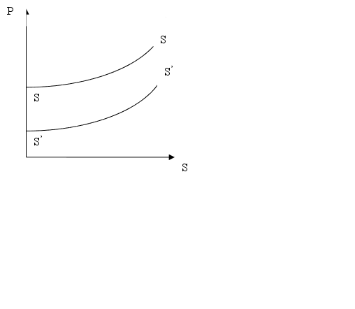 Рисунок 2 – Смещение кривой предложения Рост цен на товары данной отрасли обеспечит получение дополнительной прибыли, что создаст условия для расширения производства и дополнительного притока капитала в данную отрасль. А следовательно, произойдет увеличение объема производства товаров этой отрасли. Однако увеличение выпуска товаров следует рассматривать как тенденцию, ибо постоянный рост цен и наращивание объема производства со временем приведут к затовариванию и к снижению цен. Кроме цены, на уровень предложения влияют и другие факторы: