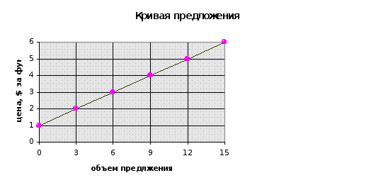 Объем предложения рыбы увеличивается по мере роста цены. Количество предлагаемой для продажи рыбы равно нулю при нулевой цене. Действительно, цена должна подняться выше 1 $ , прежде чем рыба появится на рынке. При 2 $ за фунт объем предложения уже составляет 3 миллиона фунтов в месяц. Объем предложения продолжает расти с увеличением цены. Полезно представить поведение продавцов в графическом виде. Наиболее широко используемой формой для этого является кривая предложения, представляющая собой просто график шкалы предложения. *Кривая предложения показывает в графическом виде количество предлагаемого товара при каждом значении цены, при этом другие факторы, влияющие на объем предложения остаются неизменными. Кривая предложения обычно является возрастающей.