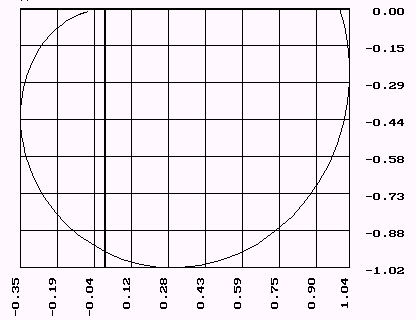 Расчет каскадной АСР методом Роточа. а) для экспериментальной передаточной функции. Первоначально определим настройки внутреннего регулятора для внутреннего контура с передаточной функцией W1(s). 0.4s + 1 W1(s) = -------------------------- 2 14.0904s + 6.9614s +1 С помощью программы ASR получим АФХ по передаточной функции и определим значения u(m,w), v(m,w), a(m,w), w.
