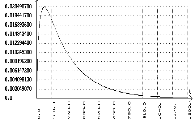 2.2 Координаты и график кривой разгона для внутреннего канала табл.2.2
