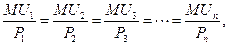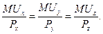 Введем обозначения: цены товаров – Рx, Рy, Pz; предельные полезности товаров – MUx, МUy, МUz. Тогда правило максимизации примет вид: