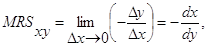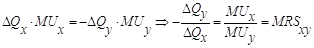 В этом случае MRS равна угловому коэффициенту наклона касательной к кривой безразличия в точке А. Знак минус означает, что изменения количества двух благ происходят в противоположных направлениях, то есть положительному изменению одного блага соответствует отрицательное изменение другого. Это является дополнительным доказательством того, что касательная, проведенная к любой точке кривой безразличия, имеет отрицательный угол наклона. Если потребитель при выборе другого набора желает остаться на той же кривой безразличия, то прирост полезности от добавленного Qx должен быть равен потере полезности от изъятого Qy, то есть: