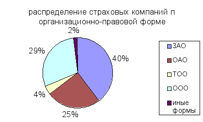 На Рис. 2. изображена диаграмма, отражающая долю каждой страховой компании по размеру уставного капитала. На Рис. 3. - долю каждой страховой компании по организационно-правовой форме. Рис. 3.