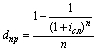 Например, предприятие может столкнуться с необходимостью выбора между получением кредита на 5 месяцев под сложную номинальную ставку 24% (начисление процентов поквартальное) и учетом в банке векселя на эту же сумму и с таким же сроком погашения. Небходимо определить простую учетную ставку, которая сделает учет векселя равновыгодной операцией по отношению к получению ссуды. По формуле (26) получим d = 22,21%. Кроме формул, приведенных в табл. 3.2.2 и 3.2.3, следует отметить еще одно полезное соотношение. Между силой роста и дисконтным множителем декурсивных процентов существунт следующая связь: