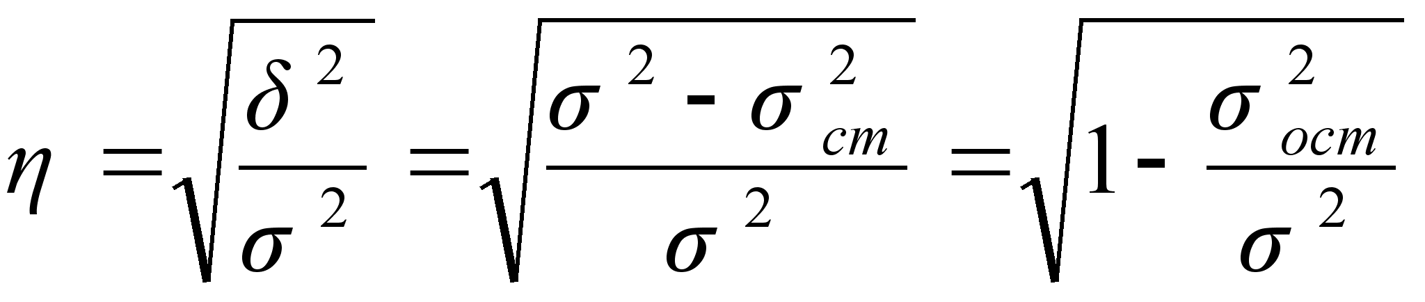 Изменение значения η объясняется влиянием факторного признака. В основе