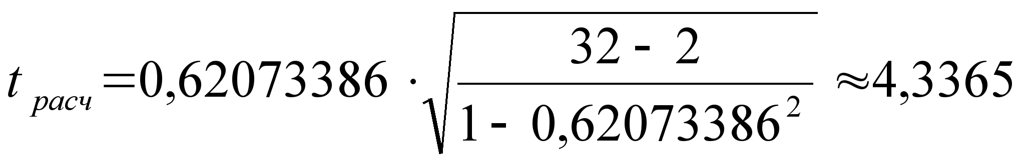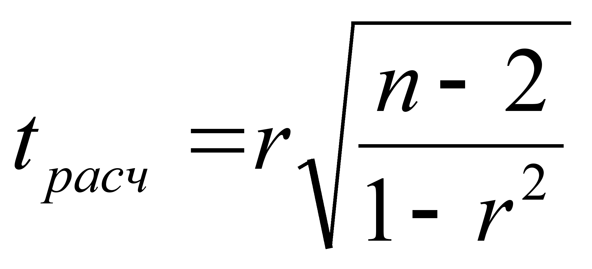 где (n - 2) – число степеней свободы при заданном уровне значимости α и объеме выборки n. Полученное значение tрасч сравнивают с табличным значением t-критерия (для α = 0,05 и 0,01). Если рассчитанное значение tрасч превосходит табличное значение критерия tтабл, то практически невероятно, что найденное значение обусловлено только случайными колебаниями (то есть отклоняется гипотеза о его случайности). Так, для коэффициента корреляции между капиталом и работающими активами получается: