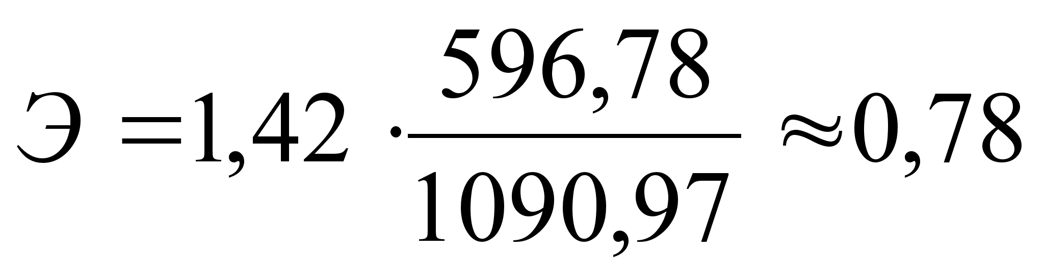 Если сравнить полученное tрасч с критическим значением из таблицы Стьюдента, где ν=30, а α=0,01 (tтабл=2,750), то полученное значение t-критерия будет больше табличного, что свидетельствует о значимости коэффициента корреляции и существенной связи между капиталом и работающими активами. Таким образом, построенная регрессионная модель ŷ=245,75+1,42x в целом адекватна, и выводы полученные по результатам малой выборки можно с достаточной вероятностью распространить на всю гипотетическую генеральную совокупность. Экономическая интерпретация параметров регрессии. После проверки адекватности, установления точности и надежности построенной модели (уравнения регрессии), ее необходимо проанализировать. Прежде всего нужно проверить, согласуются ли знаки параметров с теоретическими представлениями и соображениями о направлении влияния признака-фактора на результативный признак (показатель). В рассмотренном уравнении ŷ=245,75+1,42х , характеризующем зависимость размера работающих активов (у) от капиталов банков (х), параметр а1>0. Следовательно, с возрастанием размера капитала банка размер работающих активов увеличивается. Из уравнения следует, что возрастание капитала банка на 1 млн рублей приводит к увеличению работающих активов в среднем на 1,4 млн рублей (величину параметра а1). Для удобства интерпретации параметра a1 используют коэффициент эластичности. Он показывает средние изменения результативного признака при изменении факторного признака на 1% и вычисляется по формуле, %: