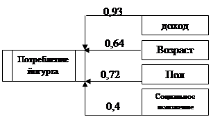 0 – т.к. >0,7 следовательно на них обращаем особое внимание ЭКО. Шкала тесноты связи: Если связь 0 – 0,3 – слабая связь 0,3 – 0,5 – заметная 0,3 – 0,5 – тесная 0,7 – 0,9 – высокая более 0,9 – весьма высокая затем сравниваем два признака (доход и пол) <0,7, то включаем в уравнение множественной регрессии. Отбор факторов для включения в уравнение множественной регрессии: