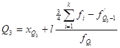 k – количество интервалов х0 – нижняя граница медианного интервала l – длина медианного интервала