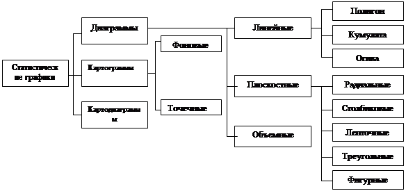 4. цифровые данные в пределах одной графы записываются с одной степенью точности. Разряды записываются строго под разрядами, целая часть отделяется запятой. 5. в таблице не должно быть пустых клеток, если данные отсутствуют, то пишут «Сведений нет» или «…», если данные равны нулю, то «–». Если значение не равно нулю но первая значащая цифра появляется после заданной точности 0,01®0,0 – если принятая точность до десятых. 6. если в таблице много граф, то графы подлежащего обозначаются заглавными буквами, а графы сказуемого цифрами. 7. если таблица основана на заимствованных данных, то под таблицей указывается источник данных, в случае необходимости таблица может сопровождаться примечаниями. §7. Статистические графикиСтатистические таблицы могут дополняться графиками. Статистические графики – условные изображения числовых величин и их соотношений посредством линий, геометрических фигур, рисунков. Плюсы графического изображения 1. наглядно, обозримо, выразительно. 2. сразу видны пределы изменения показателя, сравнительная скорость изменения и колеблемость Минусы графического изображения