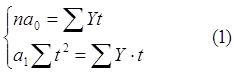 Из системы уравнений (1) можно определить параметры модели а0 и а1, по формуле: