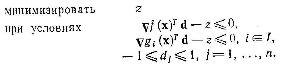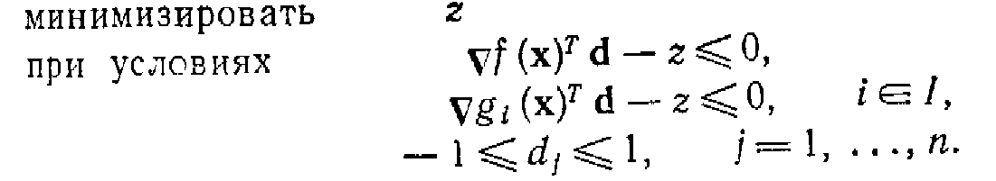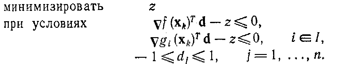 Пусть (zk, dk) — оптимальное решение. Если zk=0, то остановиться; xk является точкой Ф. Джона. Если zk < 0, то перейти к шагу 2.