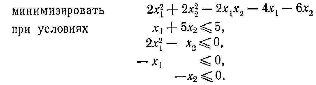 П Можно легко проверить, используя симплекс-метод, что оптимальным решением этой задачи является вектор Линейный поиск. Любая точка по направлению d1== (1.00, —1.00)T из точки xi = (0.00, 0.75)T может быть представлена в виде ,а соответствующее ей значение целевой функции равно . Максимальное значение , для которого остается допустимой точкой, равно == 0.414. При этом значении активным становится ограничение . Значение получается из решения следующей задачи одномерной минимизации: минимизировать 62—2.5—3.375 при условии 00.414 Оптимальное значение равно 1= 0.2083. Следовательно, х2 = (x1 +1d1) -(0.2083,0.5417)T. Итерация 2 Поиск направления. В точке x2= (0.2083, 0.5417)T имеем (х2)=(—4,2500, —4.2500)T Активных ограничений в этой точке нет, и поэтому задача определения направления имеет вид минимизировать z при условиях —4.25d1—4.25d2—z0, -11 Оптимальным решением является вектор d2=(1, 1)T, а z2 = -8.50. Линейный поиск. Можно легко проверить, что максимальное , при котором точка x2+d2 допустима, равно max == 0.3472. При этом активным становится ограничение . Значение 2 получается минимизацией при условии и, очевидно, равно 2 = 0.3472, так что хз = х2 +2d2 = (0.5555, 0.8889)T. Итерация 3