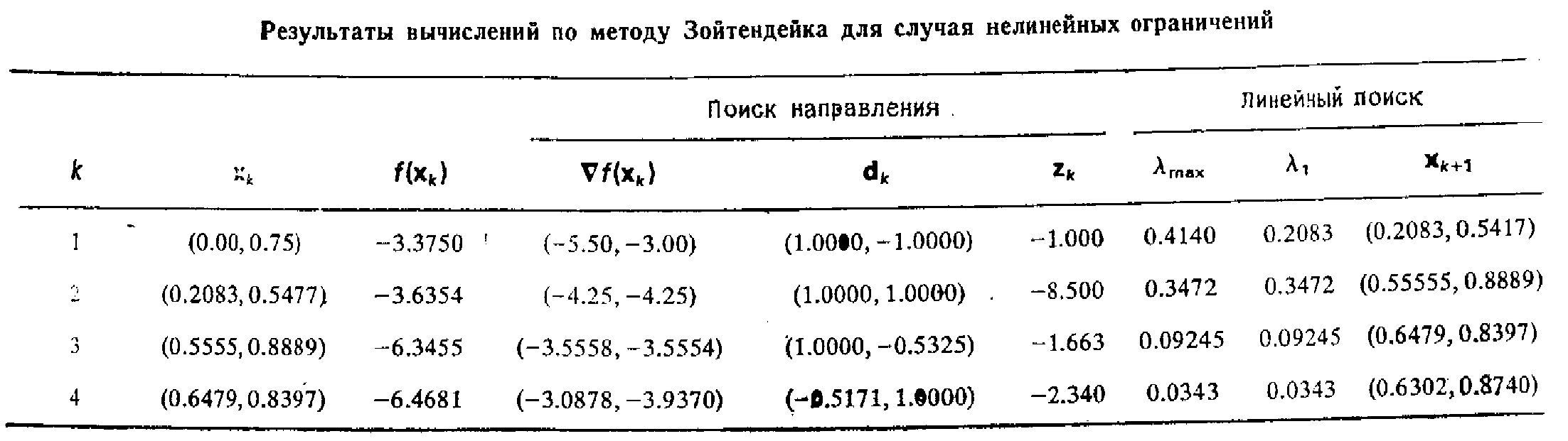 г Заметим, что . Решим задачу методом Зойтендейка, взяв в качестве начальной точки . Каждая итерация алгоритма содержит решение подзадачи, определенной в описании шага 1, для нахождения направления, а затем линейный поиск вдоль этого направления. Итерация 1