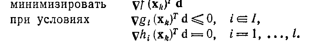 Д Это и есть условие Ф. Джона. Алгоритм метода Зойтендейка (случай нелинейных ограничений-неравенств) Начальный этап. Выбрать начальную точку х1, для которой gi(xi)0 при i= 1, ..., m. Положить k= 1 и перейти к основному этапу. Основной этап. Шаг 1. Положить и решить следующую задачу: