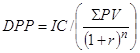 и отрицательных сальдо денежных потоков в ходе реализации проекта. Для определения эффективности инвестиционного проекта при помощи расчета внутренней нормы рентабельности используется сравнение полученного значения с базовой ставкой процента, характеризующей эффективность альтернативного использования финансовых средств. Проект считается эффективным, если выполняется следующее неравенство: IRR > i, где i - некоторая базовая ставка процента. Этот критерий также ориентирован в первую очередь на учет возможностей альтернативного вложения финансовых средств, поскольку он показывает не абсолютную эффективность проекта как таковую (для этого было бы достаточно неотрицательной ставки IRR), а относительную - по сравнению с операциями на финансовом рынке. Показатель IRR может применяться также и для сравнения эффективности различных инвестиционных проектов между собой. Однако здесь простого сопоставления значений внутренней нормы рентабельности сравниваемых проектов может оказаться недостаточно. В частности, результаты, полученные при сравнении эффективности инвестиционных проектов при помощи NPV- и IRR-методов, могут привести к принципиально различным результатам. Это обусловлено следующими обстоятельствами: для достижения абсолютной сопоставимости проектов необходимо применение т.н. дополнительных инвестиций, позволяющих устранить различия в объеме инвестированного капитала и сроках реализации проектов. При использовании NPV-метода предполагается, что дополнительные инвестиции также дисконтируются по базовой ставке процента i, в то время как использование IRR-метода предполагает, что дополнительные инвестиции также обладают доходностью, равной внутренней норме рентабельности анализируемого проекта и которая заведомо выше, чем базовая ставка дисконта . На практике сравнительный анализ инвестиционных проектов проводится в большинстве случаев при помощи простого сопоставления значений внутренних норм рентабельности. Несмотря на определенную теоретическую некорректность, такой подход позволяет устранить влияние субъективного выбора базовой ставки процента на результаты анализа. Действительно, основная цель использования инструментария дополнительных инвестиций заключается в попытке согласовать результаты сравнительного анализа при помощи применения NPV- и IRR-методов, точнее, привязать второе к первому, поскольку при таком подходе приоритет имеет чистый приведенный доход проекта. Кроме того, применение инструмента дополнительных инвестиций корректно только в случае сравнительного анализа альтернативных, или взаимоисключающих, проектов, что еще более сужает область его применения и делает совершенно непригодным для анализа инвестиционной программы. В целом по сравнению с NPV-методом использование показателя внутренней нормы рентабельности связано с большими ограничениями. Во-первых, для IRR-метода действительны все ограничения NPV-метода, т.е. необходимость изолированного рассмотрения инвестиционного проекта, необходимость прогнозирования денежных потоков на весь период реализации проекта и т.д. Во-вторых, сфера применения IRR-метода ограничена только областью чистых инвестиций. 3.4. Срок окупаемости инвестиций.(PP) Этот метод - один из самых простых и широко распространен в мировой практике, не пре