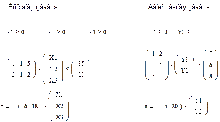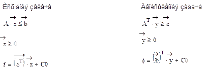 max(f)-? min(φ)-? Из данного примера легко просматривается взаимосвязь между исходной и двойственной задачами. Введя в рассмотрение следующие элементы: