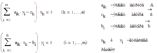 min(f)=0, все коэффициенты в последней строке меньше или равны нулю, следовательно мы перешли к новому естественному базису. Теперь можно решать основную задачу. Принцип двойственности В реальной практике встречаются задачи в которых число неизвестных больше числа ограничений. Такие задачи решать в их первозданном виде довольно трудно, но, применяя принцип двойственности можно заметно упростить решение, поскольку в двойственной задаче будет, наоборот, больше ограничений, чем переменных. Для того чтобы показать, как принцип двойственности может упростить процесс решения приведем следующий пример: