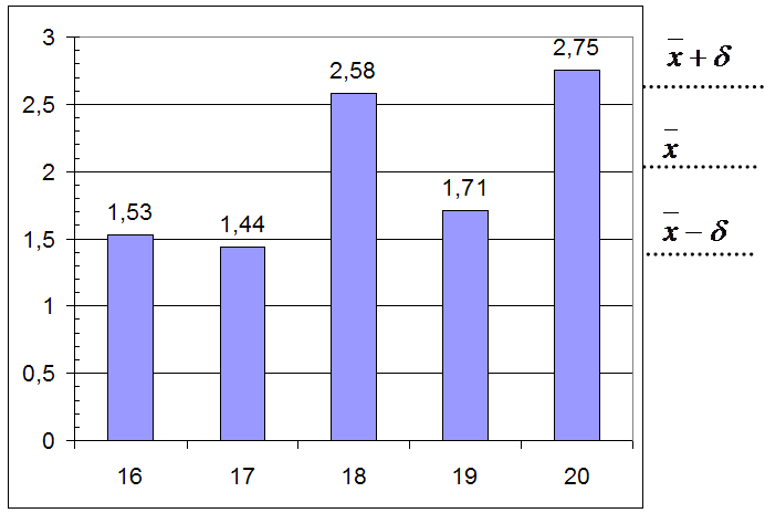 0,1487<0,15 - однородная выборка 2.3. Определение основных статистических характеристик выборки. N = 5 2.3.1. Размах