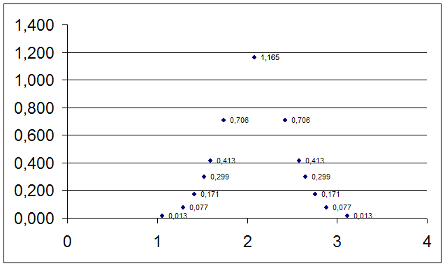 Вывод: для контроля модуля упругости на автомобильной дороге 2-й категории необходимо провести 35 измерений. Схема участка измерения представлена на рис.1. Координаты точек измерений следующие: 1) x1=55; y1=1,5 2) x2=105; y2=7,5 3) x3=65; y3=13,5 4) x4=55; y4=1,5 5) x5=145; y5=1,5 2. Определение необходимого числа измерений. Дорога 2-й категории, модуль упругости грунта III Необходимое минимальное достаточное число измерений