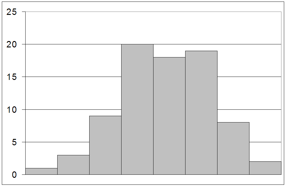 Вывод: в выборках при N=10; 5 нет значений, содержащих грубую погрешность, следовательно нет необходимости в корректировке данных при всех уровнях доверительной вероятности Pдов. Часть 3 Проверка гипотезы о подчинении выборки нормальному закону распределения. 1. Построение гистограммы экспериментальных данных.