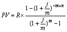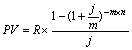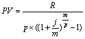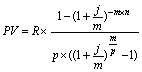 где j – номинальная процентная ставка. Предположим, рассмотренный выше перпетуитет будет выплачиваться дважды в год по 2,5 тыс. рублей, столько же раз будут начисляться проценты (25% в этих условиях становится номинальной ставкой). Его стоимость останется неизменной 20 тыс. рублей ((2,5 + 2,5) / 0,25). В наиболее общем виде (m > 1, p > 1, m ≠ p) формула приведенной стоимости перпетуитета записывается следующим образом:
