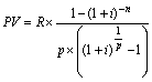 Так как в нашем примере i и R постоянные величины, то снова применяя правило суммирования геометрической прогрессии, получим частную формулу дисконтирования аннуитета: