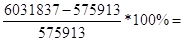 6031837 руб, или на 947,352%, что