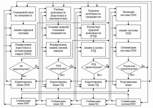 Реферат: Концептуальные основы единой системы государственного кадрового обеспечения сферы информатизации РоссииРеферат: Концептуальные основы единой системы государственного кадрового обеспечения сферы информатизации РоссииВ.В. Нечаев Построение постиндустриального – информационного общества в России, концептуальные основы которого определены соответствующими государственными программами [Доктрина инф. безопасности РФ, 2000; Концепции информатизации общества, 1990; Нечаев В.В., Дарьин А.В., 2001], а также изложены в ряде научных публикаций [Юсупов Р.М., Заболотский В.П., 2000; Советов Б.Я., 2000; Инф. общество в России, 2001; Юзвишин И.И., 2001], может быть успешно реализовано при наличии необходимого и достаточного количества и качества разнородных ресурсов, в том числе и прежде всего кадровых – высокообразованных активных профессионалов (специалистов) в области информатики и вычислительной техники (ИВТ) – информациологов. Иными словами, одной из важнейших проблем информатизации России, наряду с необходимым и достаточным финансированием, является адекватное кадровое обеспечение. Адекватное потребностям, а точнее – рассматриваемой проблеме создания информационного общества, кадровое обеспечение сферы информатизации, в свою очередь, представляет самостоятельную, многоаспектную комплексную проблему. Проблема подготовки и использования кадров – ПИК специалистов, ориентированных на различные области и уровни интеллектуальной (научно-теоретической) и материальной (предметно-практической) деятельности включает взаимосвязанные комплексы стратегических и тактических задач. Такие комплексы относятся к: политической, социальной, экономической, организационной, информационной, дидактической, психологической, юридической и ряду других сфер, успешное разрешение проблем и задач в которых возможно на основе целевой концентрации разноплановых ресурсов. Важность обозначенной проблемы, ее масштабность и сложность, а также наукоемкость, интеллектуалоемкость и ресурсоемкость по ряду других направлений, со всей очевидностью требует государственного подхода – единой государственной политики. Таким образом, проблема подготовки и использования кадровых ресурсов в сфере информатики, вычислительной техники и телекоммуникаций – ИВТ для информатизации России может быть успешно разрешена в рамках Единой системы Государственного кадрового обеспечения – ЕС ГКО. Анализ, описание и модельное представление ЕС ГКО в рамках данного рассмотрения осуществляется на основе системно–комплексного подхода (СК-подхода). Следовательно, рассмотрение ЕС ГКО, как многоаспектного, комплексного, сложного, неоднородного объекта, ориентированного, в частности, на сферу ИВТ, осуществляется с единых научно-методических позиций. СК-подход, а также разработанные на его основе СК-анализ и СК-моделирование, дают возможность создать научно-обоснованную СК-модель ЕС ГКО в целом, а также комплекс ее подмоделей и задач соответствующей проблемной ориентации и уровней организации. При этом, возникает возможность с заданной степенью полноты, целостности и объективности рассмотреть проблемы ПИК в динамике их развития в среде ЕС ГКО. Классические дидактические теории ориентируют учебный процесс, реализуемый в среде системы ПИК, специалистов, на формирование