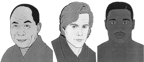 Рис. 1. Представители монголоидной, европеоидной и негроидной рас Между представителями разных рас имеются физиологические отличия: уровень потоотделения с единицы площади кожи, показатели уровня холестерина в крови и некоторые другие. Однако они не отличаются по числу хромосом (у каждого человека их 46), уровню развития мозга, соотношению лицевого и мозгового отделов, строению стоп и рук. В смешанных браках представителей разных рас рождаются полноценные здоровые дети. На протяжении длительного времени в антропологии господствовали представления о большой значимости основных расовых признаков и о роли естественного отбора в их формировании. Применение методов молекулярной антропологии значительно изменило представление о расах и расогенезе. Существует три основных подхода к классификации рас: а) без учета происхождения; б) с учетом происхождения и родства; в) на основе популяционной концепции. Сейчас антропологи познакомят нас с каждой из них. 1-й антрополог. При первом подходе – без учета происхождения – выделяют три больших расы, которые, включают в себя 22 малые, часть из которых – переходные. Схема расовой классификации изображается при этом в виде круга (рис. 2). Само существование переходных рас свидетельствует, с одной стороны, о динамизме расовых признаков, а с другой – об условности деления человечества даже на большие расы. Переходные малые расы совмещают в себе не только морфологические признаки, но и генетические характеристики больших. Отсюда можно сделать вывод, что малые расы либо возникли в результате смешанных браков (гибридогенны), либо сохранили более древние черты, существовавшие еще до формирования больших рас.
