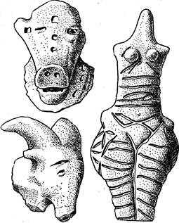 Середньотрипільські племенаСередній період енеоліту був періодом дальших помітних зрушень у господарському та суспільному житті трипільських племен, дальшого збільшення чисельності населення. Відносна перенаселеність змушувала трипільські племена освоювати сусідні землі. Трипільські племена Середнього Подністров'я розселювалися на північний захід у Верхнє Подністров'я. Трипільські племена Побужжя просунулися далі вгору Південним Бугом і на північний схід, вздовж течії Росі, досягнувши Середнього Дніпра і витіснивши звідти племена Дніпро-донецької культури. Внаслідок збільшення трипільського населення і його розселення в середній період енеоліту на нові землі на широких просторах між Прутом і Дніпром уже проживало кільканадцять трипільських племен, кожне з яких характеризується відповідними етнографічними особливостями матеріальної культури. У цей час помітно збільшилися розміри трипільських поселень, житлових та господарських споруд. В окремих поселеннях, як, наприклад, у Володимирівні на Південному Бузі, налічувалося вже понад двісті будівель, а кількість жителів сягала двох тисяч. У трипільських племен Побужжя та Подніпров'я простежується певна закономірність у розташуванні поселень: їх будували переважно на зручних для оборони місцях. Поряд з великими (багатосімейними) житлами будувалися малі (односімейні). В кожному приміщенні, де проживала окрема сім'я, були піч, відповідний господарський та побутовий інвентар. Крім того, в окремих камерах з випаленої глини споруджувалися жертовники, які розписувалися різноманітними фарбами. У цьому, зокрема, проявлялася одна з характерних особливостей культури середньотрипіль-ських племен Побужжя. Сталися зміни і в асортименті знарядь праці, зросло виробництво зброї (вістер до стріл та списів), що було зумовлено зростаючими господарськими та суспільними потребами. Спорудження численних довгочасних жител, основним будівельним матеріалом для яких, крім глини, служило також дерево, вимагало дальшого вдосконалення і виготовлення продуктивніших деревообробних інструментів. У зв'язку з цим збільшилося виготовлення сокир і тесел з твердих порід каменю та кременю. Про зростання попиту на крем'яні сокири свідчить налагодження їх масового виробництва в спеціальних кременярських майстернях. Для господарських та побутових потреб трипільці широко використовували такі породи дерева, як дуб, ясень, граб, клен, в'яз та верба. Незважаючи на те, що в господарство та побут трипільських племен дедалі ширше входили вироби з міді, кременеобробне виробництво продовжувало залишатися провідною галуззю у виготовленні основних знарядь праці, зброї та предметів побуту. Збільшувався асортимент крем'яних виробів, удосконалювалася технологія кременеобробного виробництва, а разом з ним зростало і значення спеціалізованих кременеобробних майстерень. Кременедобувне та кременеобробне виробництво Подністров'я своєю різноманітною продукцією забезпечувало потреби не тільки трипільських племен Подністров'я, а й населення інших районів, зокрема Подніпров'я, де не було родовищ кременю доброї якості. Вищого рівня досягло в середньоенеолітичний період керамічне виробництво трипільців. Саме в цей час набуло розвитку виготовлення самобутньої трипільської розписної кераміки. Якщо в 