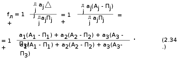 где Аj, Пj - итоги соответствующих групп по активу и пассиву; аj - весовые коэффициенты. Преобразуем формулу (2.33.) так, чтобы в нее входили платежные излишки или недостатки, определяемые соотношением (2.31.):