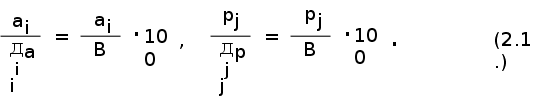 В графе 1 таблиц 2.3 и 2.4 указаны статьи и разделы актива и пассива баланса предприятия. Для того чтобы отразить главные, существенные черты финансового состояния, набор статей баланса может быть сильно агрегирован, вплоть до рассмотрения в первую очередь итогов разделов актива и пассива с выделением в некоторых разделах итогов больших групп однородных статей. Для описания алгоритма расчета сравнительного аналитического баланса используются следующие обозначения: ai(t1), ai(t2) - значения по i-й статье актива баланса предприятия на начало и конец отчетного периода; pj(t1), pj(t2) - аналогично для статей пассива баланса; B(t1), B(t2) - итог баланса предприятия. В качестве величин ai, pj могут выступать также итоги групп статей или разделов баланса. В графах 2 и 3 отражаются абсолютные величины статей (или итогов их групп и разделов) актива и пассива баланса на начало и конец отчетного периода: a1(t1), pj(t1); ai(t2), pj(t2), i є I, j є J, где I, J - множества индексов статей актива и пассива. В графах 4 и 5 отражены удельные веса величин статей в итоге баланса на начало и конец отчетного периода: