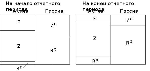 Здесь для упрощения записи не указывается аргумент начала и конца отчетного периода. В графе 6 показаны изменения абсолютных величин статей за отчетный период: