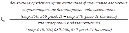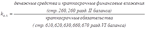 интересен коэффициент абсолютной ликвидности ( Общая платежеспособность предприятия определяется как способность покрыть все обязательства предприятия (краткосрочные и долгосрочные) всеми ее активами. Коэффициент общей платежеспособности рассчитывается по формуле