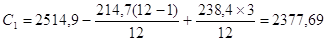 С – среднегодовая стоимость основных фондов, тыс. грн; Сн – стоимость основных фондов на начало года, тыс. грн; Св – стоимость основных фондов, введенных в эксплуатацию в отчетном году, тыс. грн; М – число месяцев функционирования основных фондов, введенных в отчетном году, начиная с первого числа месяца, следующего за сроком ввода объекта; Сл – стоимость основных фондов, выбывающих в плановом году, тыс. грн; М1 – число месяцев функционирования основных фондов, выбывающих в плановом году, начиная с первого числа месяца, следующего за сроком выбытия объекта. Среднегодовая стоимость основных производственных фондов группы 1 (С1):