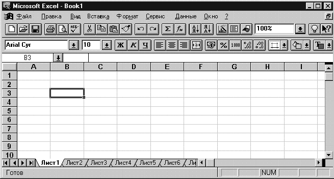 Примечание. Если в текущем сеансе работы был изменен вид экрана программы Excel, то он будет сохранен до следующего сеанса. Вот почему важно научиться управлять видом экрана. Далее мы ч вами научимся вводить и редактировать данные.