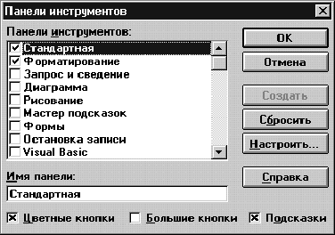 Рис. 3 Окно Панели инструментов Данные. Ввод и редактирование данных Все данные таблицы размещаются в ячейках. Содержимым ячейки электронной таблицы может быть текст, числовое значение или формула. Табличный процессор должен «знать», какого типа данные хранятся в конкретной ячейке таблицы для того, чтобы правильно интерпретировать ее содержимое. Текст и числа рассматриваются как константы, потому что изменить их можно только редактированием соответствующих ячеек. Формулы же автоматически пересчитывают свои значения, как только хотя бы один их аргумент был изменен. Текст. Программа Excel воспринимает как текст любую введенную строку, которая не похожа ни на число, ни на формулу. Если вы вставите пробел в строку, которая без него была бы числом, то она будет восприниматься как текст. После ввода текстовые данные автоматически выравниваются по левой границе ячейки. Числовые константы. Числовые значения, используемые в табличном процессоре Excel, разделяются на целые, вещественные. даты, время. Вещественные константы можно записывать в форме с фиксированной точкой и в форме с плавающей точкой. Запись числа с фиксированной точкой предполагает, что число содержит целую и дробную части, разделенные десятичной запятой. При записи числа в экспоненциальной форме сначала записывается мантисса, затем - латинская буква Е (прописная или строчная), после нее - порядок. Мантисса может быть записана как целая константа или константа с фиксированной точкой, а порядок - только как целая константа. Числовая константа в экспоненциальной форме трактуется как мантисса, умноженная на 10 в степени, равной порядку. Например, числа 0,00001 и 1ОООООО могут быть записаны следующим образом: 1е-5 или О.1е-4 и 1е6 или IE+6 соответственно. Чтобы ввести отрицательное значение, надо поставить знак — и (минус) перед числом или заключить вводимое число в круглые скобки. Даты и время вводятся в ячейки электронной таблицы как числа. Это объясняется тем, что в дальнейшем дата и время могут быть использованы в качестве аргументов для формул. Программа Excel распознает следующие форматы для даты: 16/06/96, 16.06.96, 16/июня/96, 16 июня 96, что означает 16 июня 1996 года; форматы для времени: 12:10 или 12:10:04. После ввода числовые данные выравниваются по правой границе ячейки. Формулы. Перед первым символом формулы обязательно ставится знак «=» (знак равенства). Формулы, занесенные в ячейки табличного процессора, представляют собой арифметические или логические выражения. Арифметические выражения могут содержать круглые скобки, знаки арифметических операций, стандартные (встроенные) функции. Например: SORT(B4-2-4*B3*B2); SIN(CI2). Нет необходимости запоминать все встроенные функции. При вводе формул большую помощь окажет Мастер функций, вызов которого осуществляется нажатием комбинации клавиш Shilft+F3, либо кнопкой (Fx)на панели стандартных инструментов. Наибольший интерес представляют функции, аргументом которых является не одна ячейка, а диапазон ячеек. Диапазон - это множество ячеек, образующих в таблице область прямоугольной формы. Диапазон задается адресом ячейки, стоящей в левом верхнем углу, и адресом правого нижнего угла области, разделенных двоеточием. Например: А2:В12. Логические выражения строятся с помощью операций отношения ( , =, >=, <>) и логических операций (логическое «И», логическое «ИЛИ». логическое о