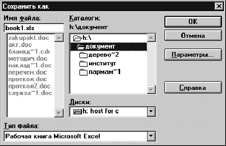 Примечание 1. Можно указывать имя файла без расширения. По умолчанию программа Excel дает файлу расширение .xls. Примечание 2. В файле сохраняется вся рабочая книга, включающая 16 листов, а не только тот лист (электронная таблица), в котором вы работали. Упражнение 5. Выход из программы Excel.