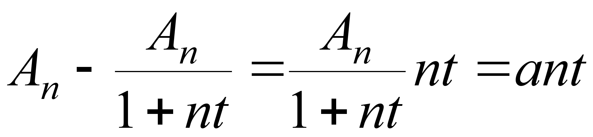 Рассмотрим стоимость капитала в данный момент (формула (2)). Можно воспользоваться формулой бинома Ньютона для разложения (1+t)-n и отбрасывая все члены бинома, кроме первых двух получим формулу приближенного нахождения стоимости капитала без процентов на него ntAn:
