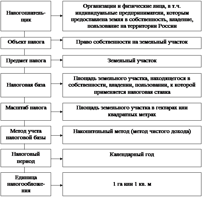 Рис. 2 2.1.2. Налоговая ставка и метод налогообложения В соответствии со ст. 53 НК РФ налоговая ставка – это величина налоговых начислений на единицу измерения налоговой базы. По методу установления выделяют ставки твердые и процентные (квоты). Ставки земельного налога являются твердыми, так как определяют на каждую единицу налогообложения (на 1 га или на 1 кв. м) фиксированный размер налога. По своему содержанию выделяют ставки маргинальные, фактические и экономические. Маргинальными называются ставки, которые непосредственно указаны в нормативном акте о налоге. Так, например, Закон Российской Федерации «О плате за землю» устанавливает средние размеры земельного налога по субъектам РФ с 1 га пашни, средние ставки земельного налога в городах и других населенных пунктах за 1 кв. м.. При этом также определяются коэффициенты увеличения средней ставки земельного налога в курортных зонах и за счет статуса города, развития социально-культурного потенциала. Необходимо отметить, что ставки земельного налога в данном Законе приведены в условиях 1994 года. В связи с этим для расчета средней ставки налога необходимо учесть коэффициенты индексации ставок земельного налога: в 1994 году применялся коэффициент 50; в 1995 году – коэффициент 2; в 1996-1997 годах – соответственно 1,5 и 2; в 1999 – 2; в 2000 – 1,2. Закон Курганской области «О налогах и налоговых льготах на территории Курганской области в 2001 году» определяет ставки земельного налога за земли сельскохозяйственного назначения вне черты населенных пунктов; за земли в границах сельских населенных пунктов и вне их черты, предоставленные гражданам для ведения личного подсобного хозяйства, садоводства, огородничества, животноводства, сенокошения и выпаса скота; за земли, занятые полигонами (кроме военных) и аэродромами вне населенных пунктов, а также за земли водного фонда вне населенных пунктов, предоставленные для хозяйственной деятельности или в рекреационных целях (см. приложение 7). Тот же Закон устанавливает дифференцированные ставки земельного налога по видам угодий и оценочным группам почв за земли сельскохозяйственного назначения и т.д. Сравнение различных законов об одном и том же налоге лишь на основе сопоставления маргинальных ставок не принесет значительного результата, так как не позволит сравнить другие существенные условия налогообложения с учетом предоставляемых законом льгот и т.п. Поэтому в целях анализа проводят сравнение не маргинальных, а фактических и экономических ставок. Фактическая ставка определяется как отношение уплаченного налога к налоговой базе. Экономическая ставка определяется как отношение уплаченного налога ко всему полученному доходу. На основе условного примера, приведенного в п. 3 настоящей курсовой работы, можно исчислить фактическую и экономическую ставки земельного налога. В этом случае фактическая ставка будет равна: 448 983,8 руб. : 4 027 480 кв. м. = 0,1114 или 11,14 коп. В данном случае она показывает среднюю ставку земельного налога по всем объектам налогообложения земельным налогом. Экономическая: 448 983,8 руб. : 5 037 480 кв. м. = 0,0891 или 8, 91 коп. Отражает среднюю ставку земельного налога по всем объектам налогообложения с учетом применяемых в данном случае льгот. Метод налогообложения определяется как порядок изменения ставки налога в зависимости от роста налоговой б