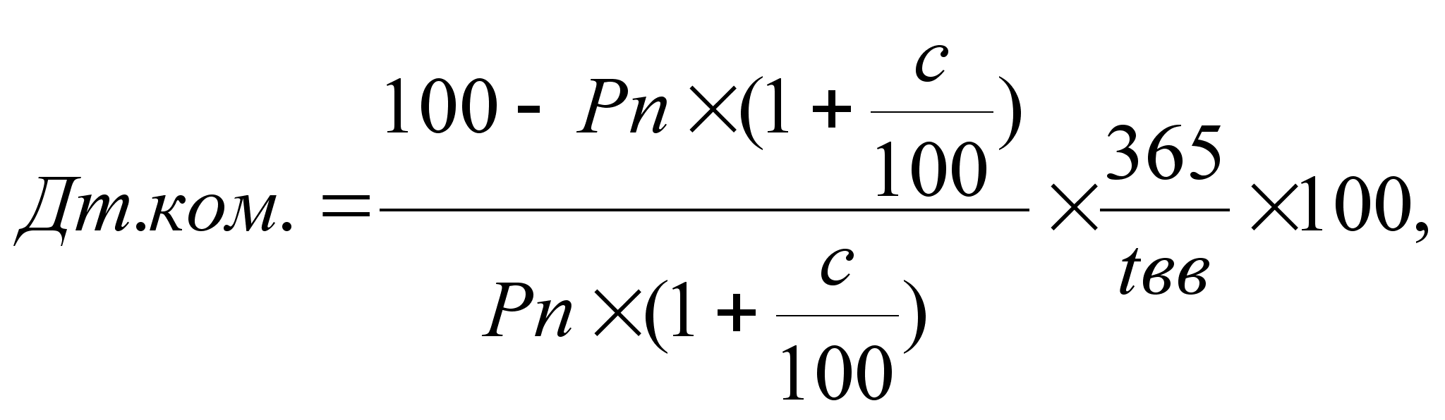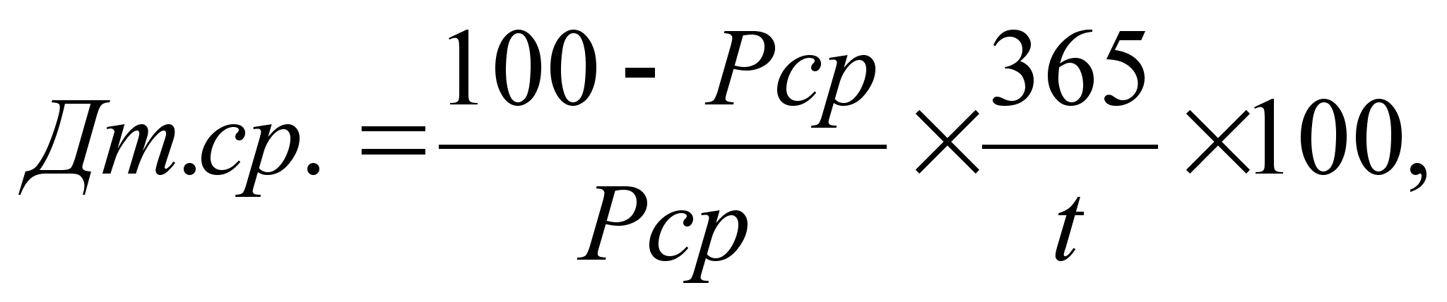 где Ротс – цена отсечения, установленная Минфином при проведении аукциона по размещению ГКО; t – число дней от даты аукциона до даты погашения. 2. Доходность по средневзвешенной цене (Дср) рассчитывается по формуле: