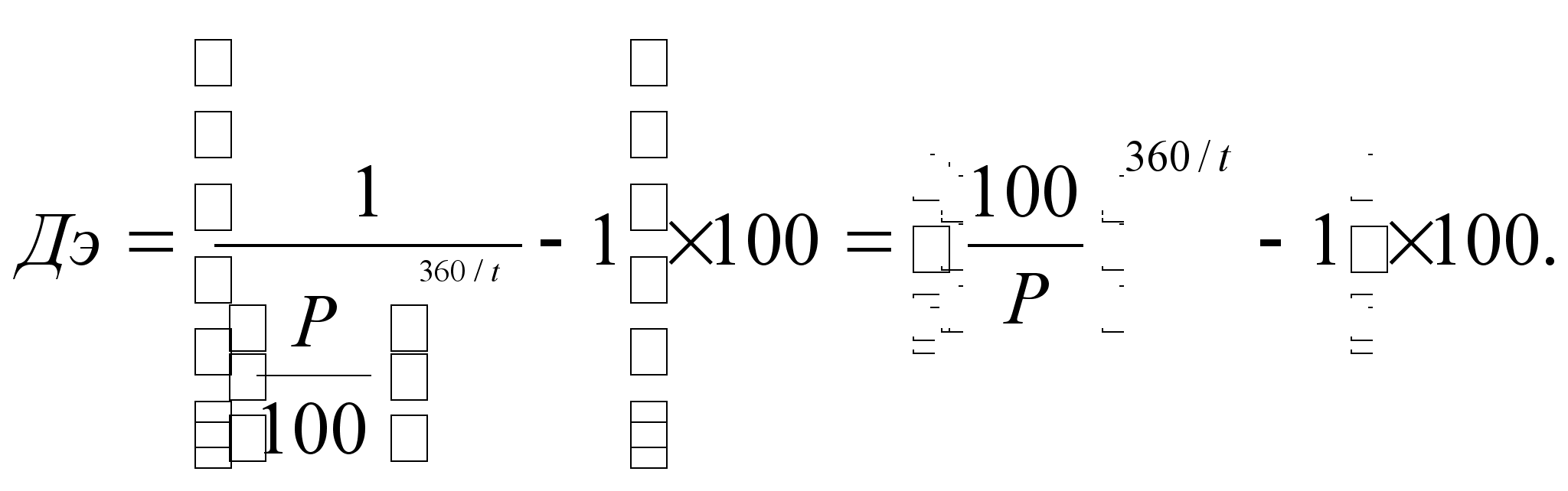 где pi – цена i – той сделки; wi – объем i – той сделки. Доходность к погашению рассчитывается ещё и по методу сложных процентов, показывая потенциальную доходность от реинвестирования средств на аналогичных условиях в течении всего года. Тогда она называется эффективной доходностью (Дэ):