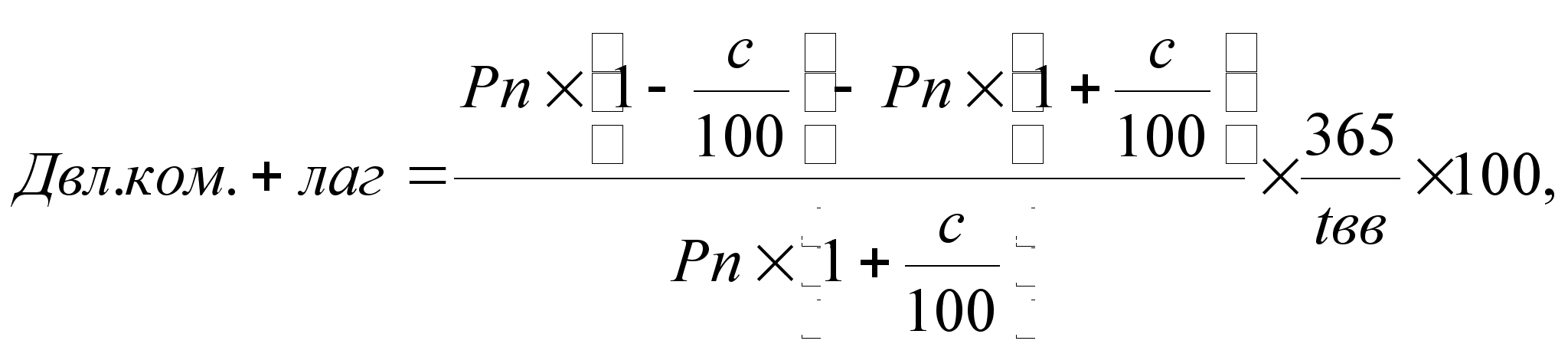 где Рп – цена покупки ГКО; tвл – количество дней с момента вложения до даты погашения выпуска; с – ставка выплачиваемого комиссионного вознаграждения. Если же инвестор после погашения ГКО будет изымать деньги с рынка, тогда необходимо рассчитывать реальную доходность с учетом временных лагов: