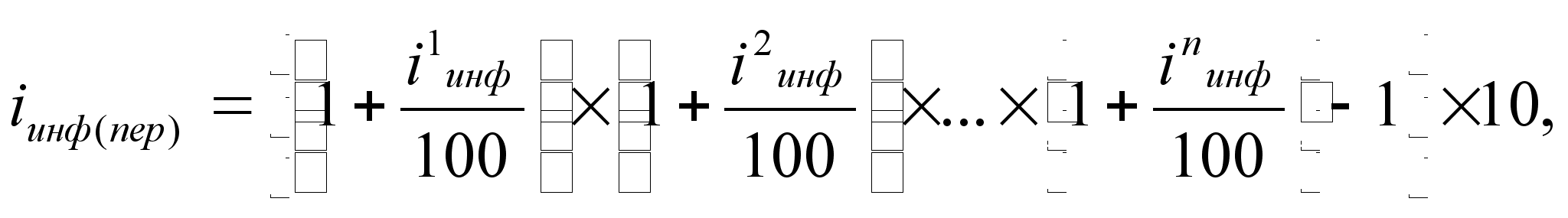 Если же нам даны показатели инфляции за каждый месяц, то можно рассчитать общий показатель, используя формулу расчета цепных индексов: